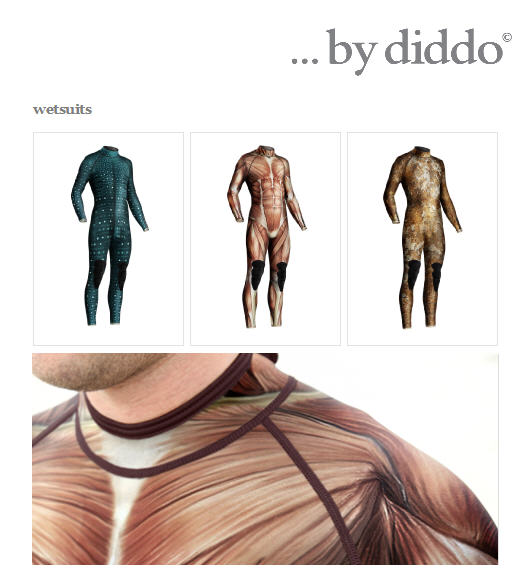Posted on July 16, 2009September 25, 2011 by Stef McDonaldCrazy Wetsuits Via If It’s Hip, It’s Here: Check out the wetsuits by an artist named Diddo, whose creations include patterns that are truly wild, like the anatomic one. Makes the basic black wetsuit seem boring. –Stef McDonald