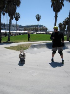 Posted on May 31, 2010January 6, 2014 by Stef McDonaldSkateboarding Dog in Venice Photos taken in Venice Beach, CA. The skateboarding dog’s name? Bony Hawk. –Stef McDonald