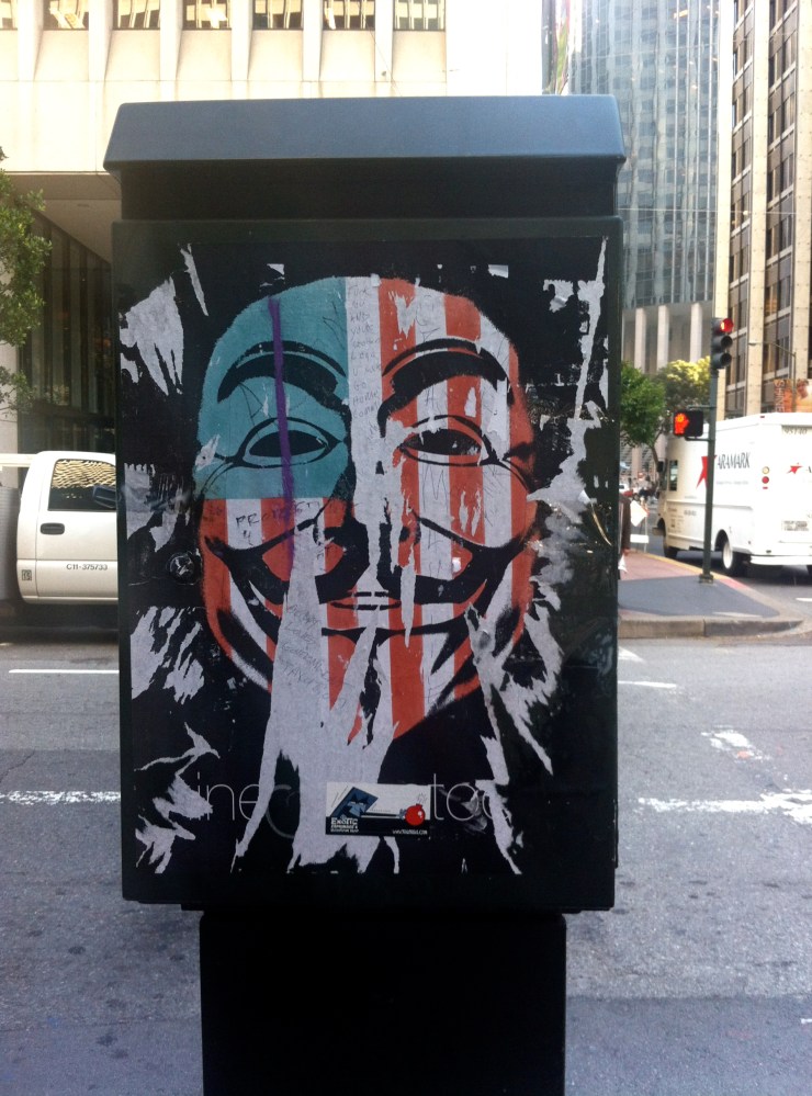 Posted on December 16, 2011January 27, 2017 by Stef McDonaldRoadside: Anonymous in SF Photo taken in San Francisco, a few blocks from the Occupy San Francisco camp.
