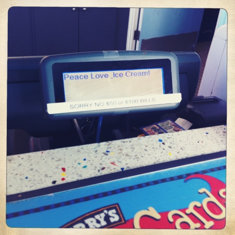 Posted on May 4, 2012January 27, 2017 by Stef McDonaldPeace, Love, Ice Cream Good message. Photo from the local Ben & Jerry’s in Santa Monica, CA.