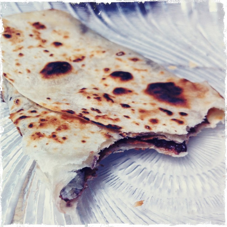 Dark chocolate hazelnut spread inside a tortilla.