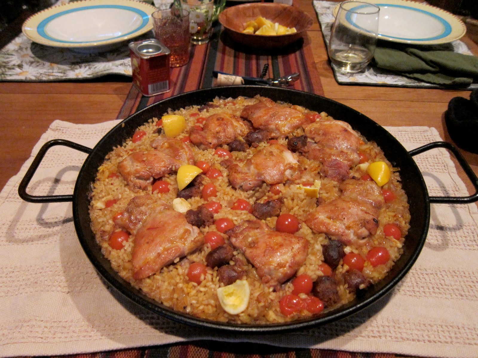 Mr. MVP and I have made a seafood paella before and now we’ve got a great version with chicken and chorizo. Biggest way this differs from most recipes is that we use tomatoes instead of peppers.