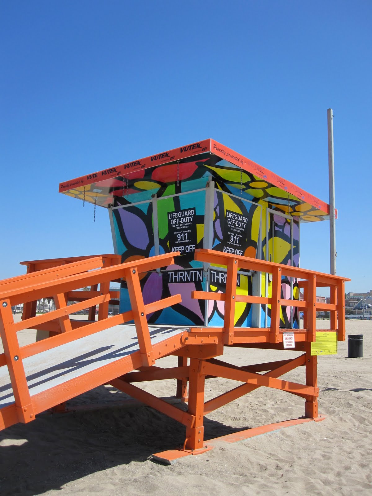 We were public art servants today, painting a local lifeguard tower for the “Portraits of Hope Life Guard Towers” project. 100 towers in Southern California were painted vibrant colors today — the Venice one I worked on with fellow art-loving neighbors was orange — and panels will soon be added for the installation, which will be on display May through September. –Stef McDonald