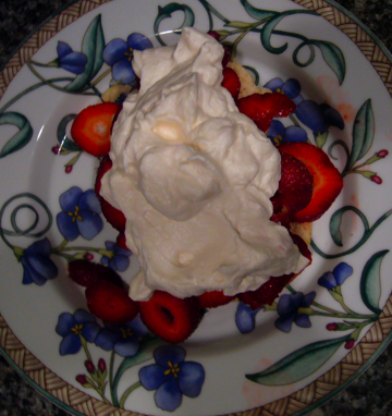 For the strawberry shortcake, I followed the recipe for the biscuits and whipped cream but, because the strawberries were so perfect as is, I decided against mixing them with sugar (why mess with perfection?). Slice the biscuits on plates, top with sliced strawberries, and finish with fresh whipped cream.